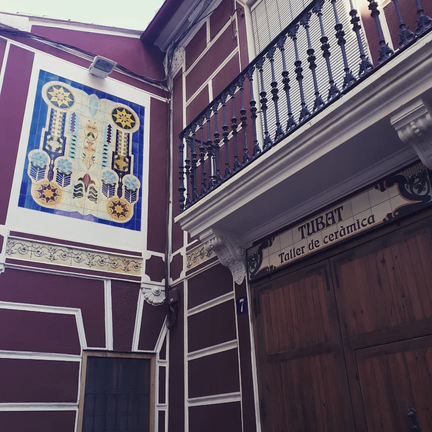 Una informadora turística nos acompañó en un interesante recorrido por los rincones más emblemáticos de la ciudad de Manises. Es de destacar la preciosa fachada cubierta de cerámica del Edificio «El Arte» (1922) que alberga la Tourist Info y el MUMAF (Colección Museográfica de la Fotografía).