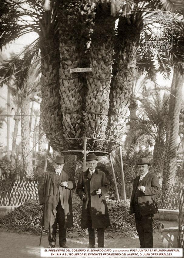 🌴Fue entonces cuando se acercó al ya por entonces popular, Jardín Huerto del Cura. Sissi que era una apasionada de la botánica y de la naturaleza, quedó fascinada por la majestuosidad de aquella palmera de siete brazos, tanto que se dirigió al capellán con estas palabras: “esta palmera tiene un poder y una fuerza dignas del más grande imperio; póngale un nombre célebre”. Hasta el momento, este raro ejemplar al que le habían nacido a dos metros del suelo tantos hijuelos se le conocía como la palmera de los ojos, o «dels ulls».