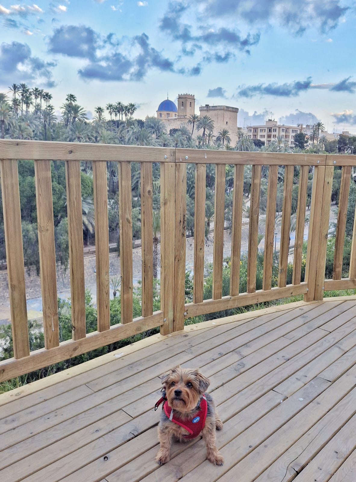 Desde la Avenida de la Comunidad Valenciana hay un mirador sobre una plataforma de madera desde el que se aprecia una bonita vista panorámica del palmeral, la basílica de Santa María y el Alcázar de la Señoría.