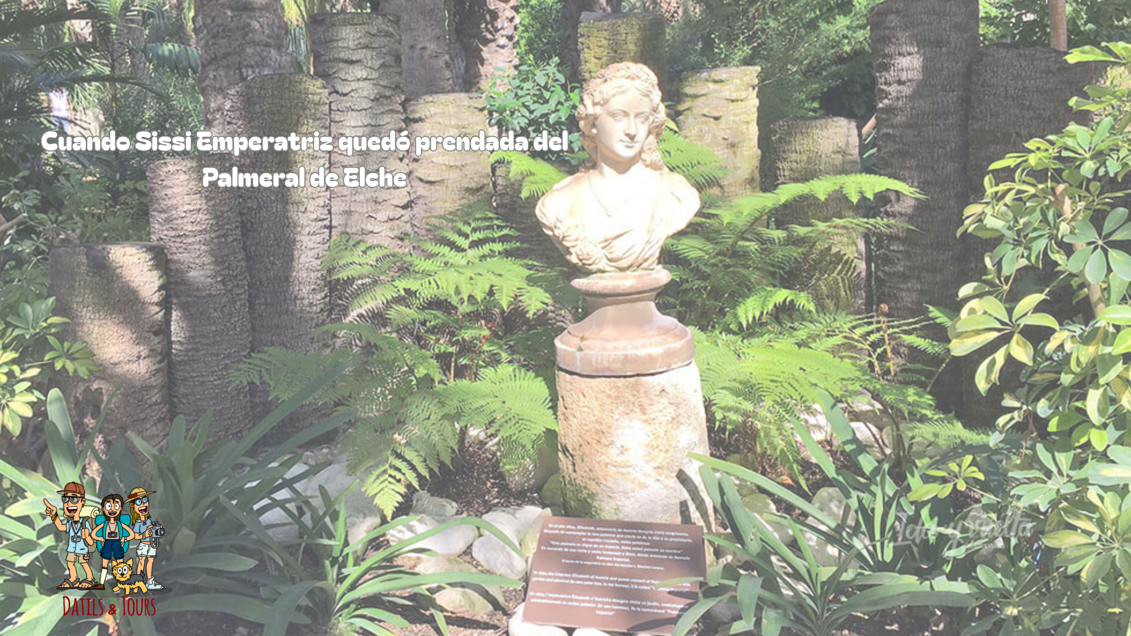 🌴Fue entonces cuando se acercó al ya por entonces popular, Jardín Huerto del Cura. Sissi que era una apasionada de la botánica y de la naturaleza, quedó fascinada por la majestuosidad de aquella palmera de siete brazos, tanto que se dirigió al capellán con estas palabras: “esta palmera tiene un poder y una fuerza dignas del más grande imperio; póngale un nombre célebre”. Hasta el momento, este raro ejemplar al que le habían nacido a dos metros del suelo tantos hijuelos se le conocía como la palmera de los ojos, o «dels ulls».
