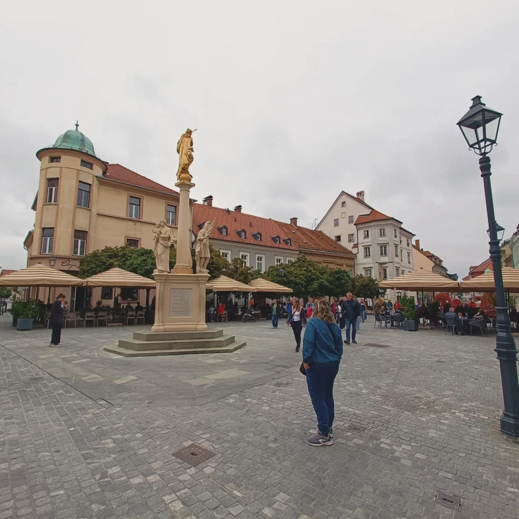 El centro histórico peatonal nos pareció muy limpio y acogedor, ornamentado con flores y plantas. No vimos tantos turistas como en otras ciudades de similar tamaño como Ptuj o Maribor, por lo que deducimos que la mayoría de visitantes solo visitan el castillo, lo que invita a descubrirla y dejarte sorprender.
