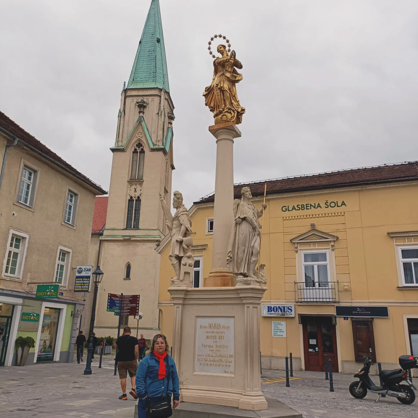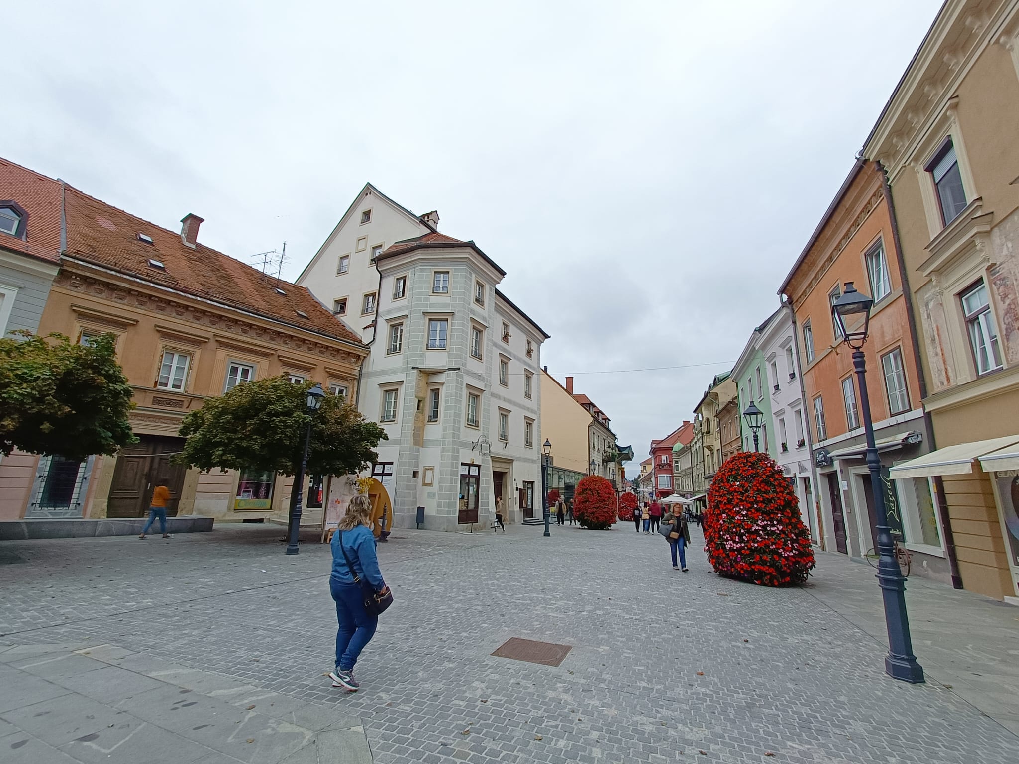 El centro histórico peatonal nos pareció muy limpio y acogedor, ornamentado con flores y plantas. No vimos tantos turistas como en otras ciudades de similar tamaño como Ptuj o Maribor, por lo que deducimos que la mayoría de visitantes solo visitan el castillo, lo que invita a descubrirla y dejarte sorprender.