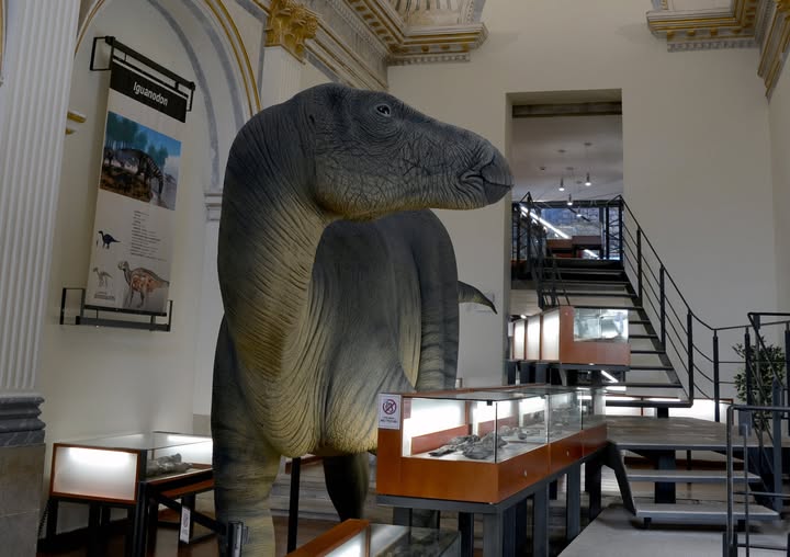 Posteriormente durante el Cretácico se formaron arcillas que conservaron restos de huesos de dinosaurios hallados en la zona. La estrella del museo es un ejemplar de Iguanodo a escala real, una de las especies que habitó la zona millones de años atrás 🦖.