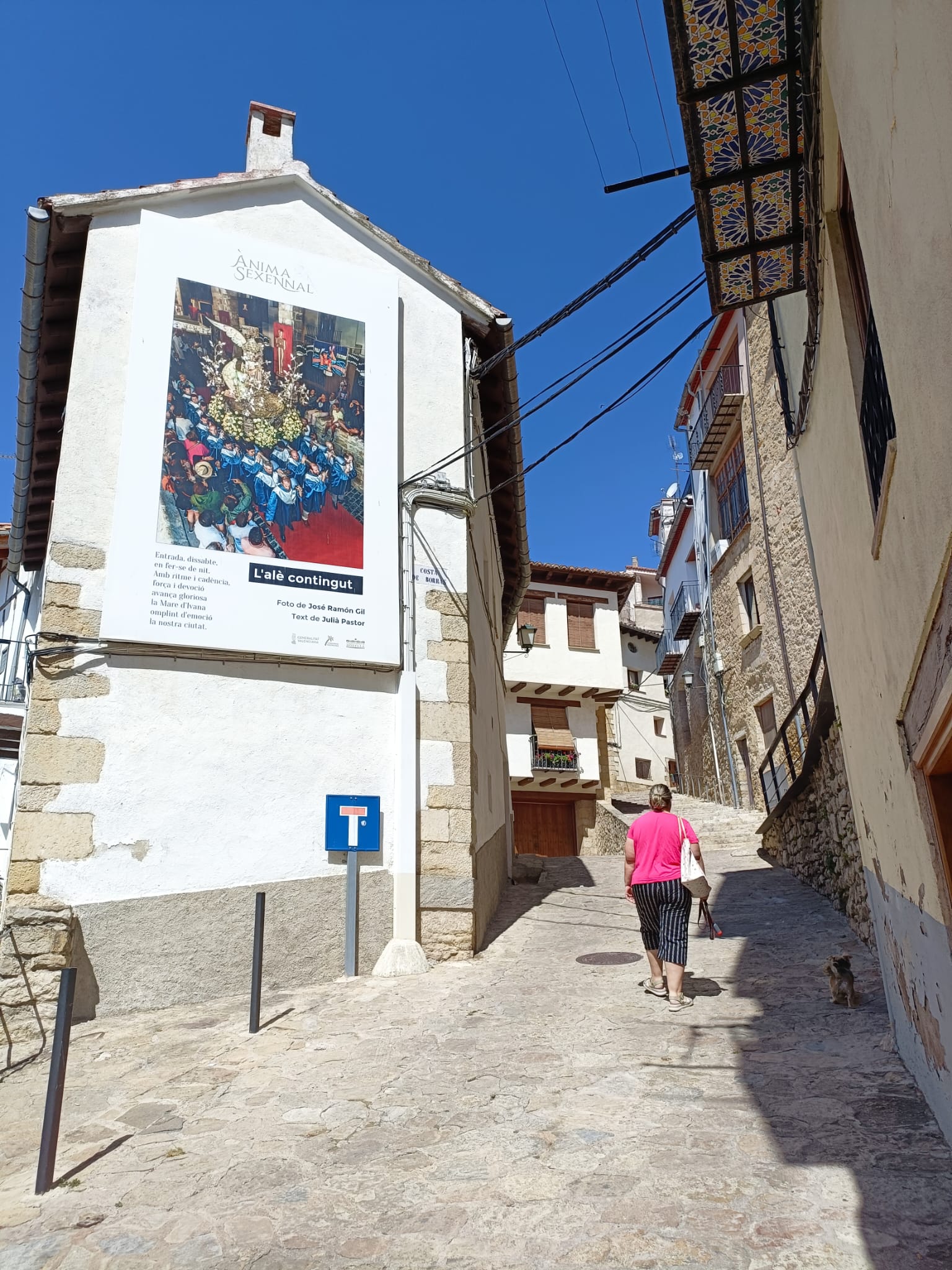 Pasear por las estrechas callejuelas empedradas del centro histórico de Morella resulta todo un placer sensorial. El silencio los días en los que la afluencia de visitantes disminuye. El olor de las pastelerías sacando de los hornos los flaons recién horneados. La belleza de sus históricas fachadas blasonadas en piedra, muchas de ellas ornamentadas con flores y macetas.
