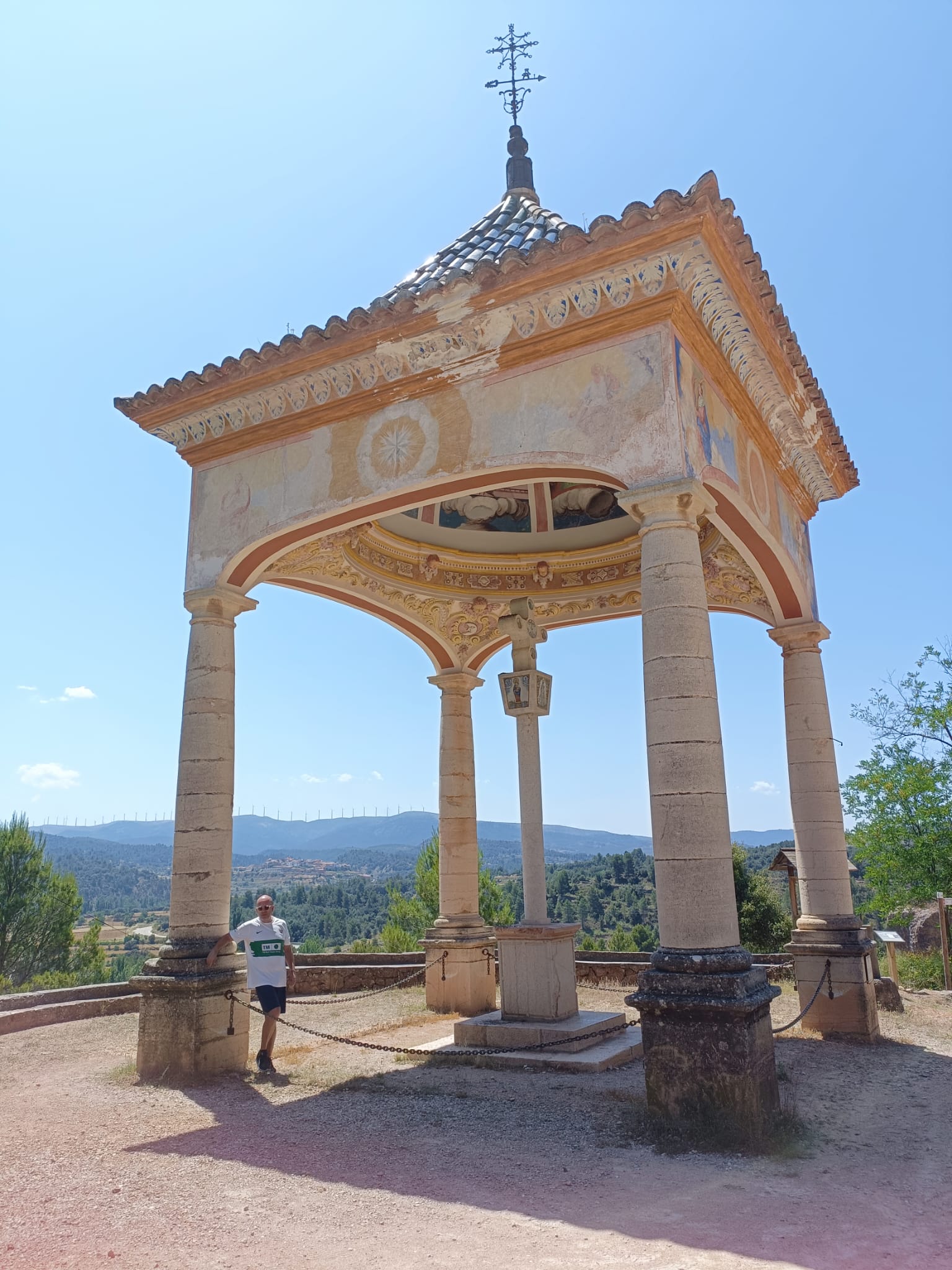 Saliendo de la carretera antes de divisar la pared de La Tossa y el santuario colgando de ella, encontrarás una cruz cubierta: una cruz bajo una cúpula levantada por la antigua corona de Aragón. El interior de la cúpula que la protege está decorado con frescos alegóricos de las virtudes de Juan Francisco Cruella. Documentada ya desde 1617 y renovada profundamente en 1686 y 1770, adquiere forma de templete piramidal, estando construida en mampostería y cubierta con tejas árabes azuladas.