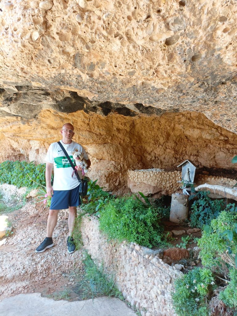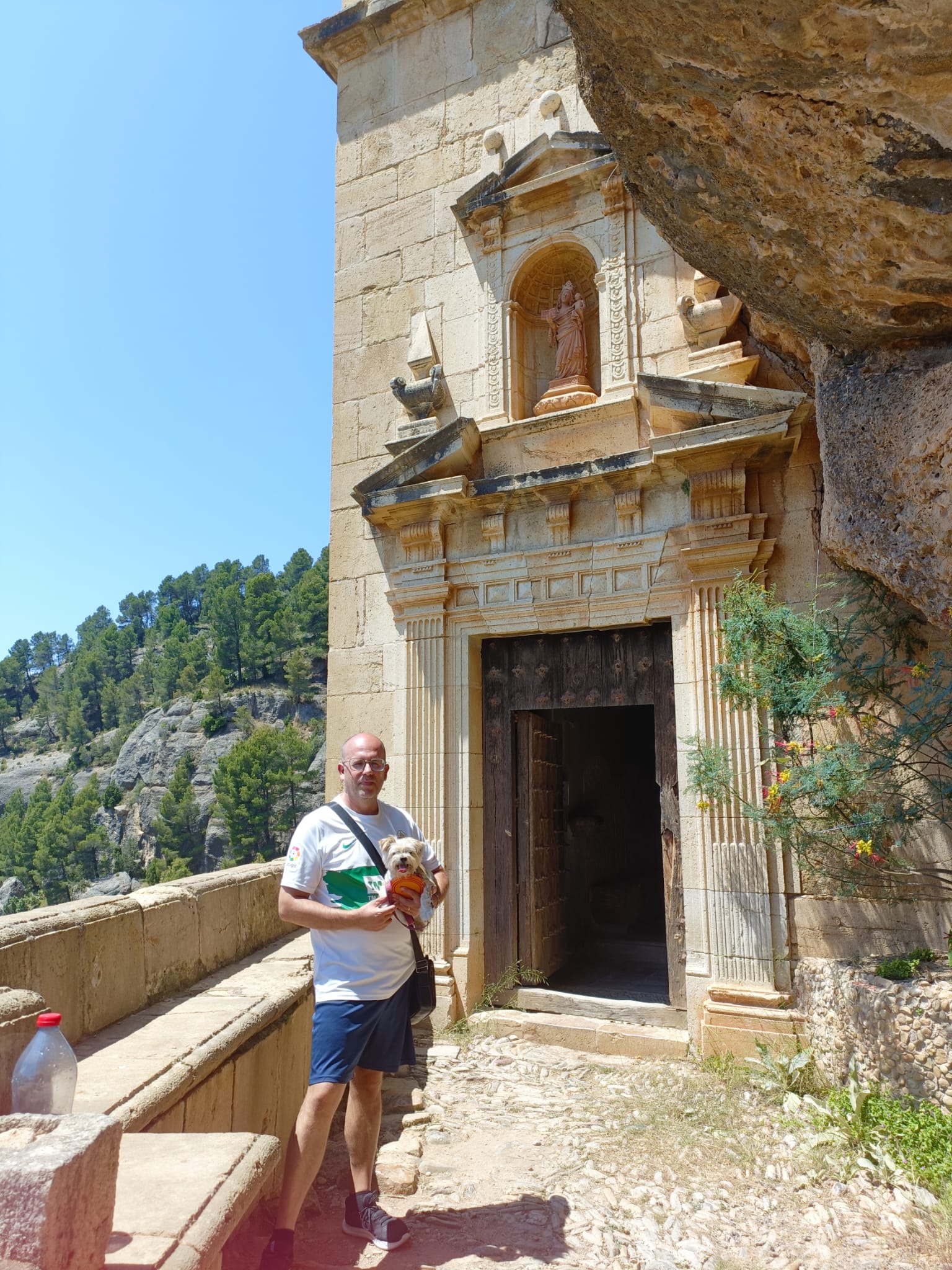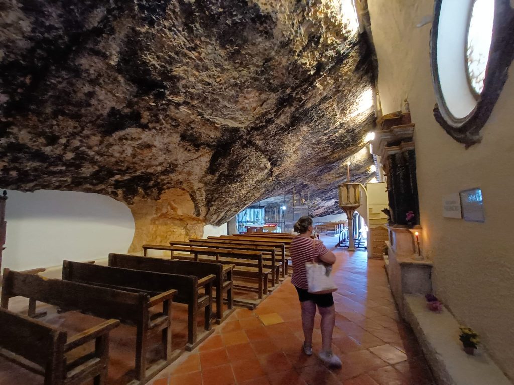 El santuario de estilo renacentista se ubica enclavado en la roca, en un abrigo natural. Presenta fachada con balcones, balaustres y muros de cañizo y cal. La ermita y su fachada, oblicua, junto al campanario, fueron realizadas en 1667. Desde aquí hay unas vistas espectaculares.