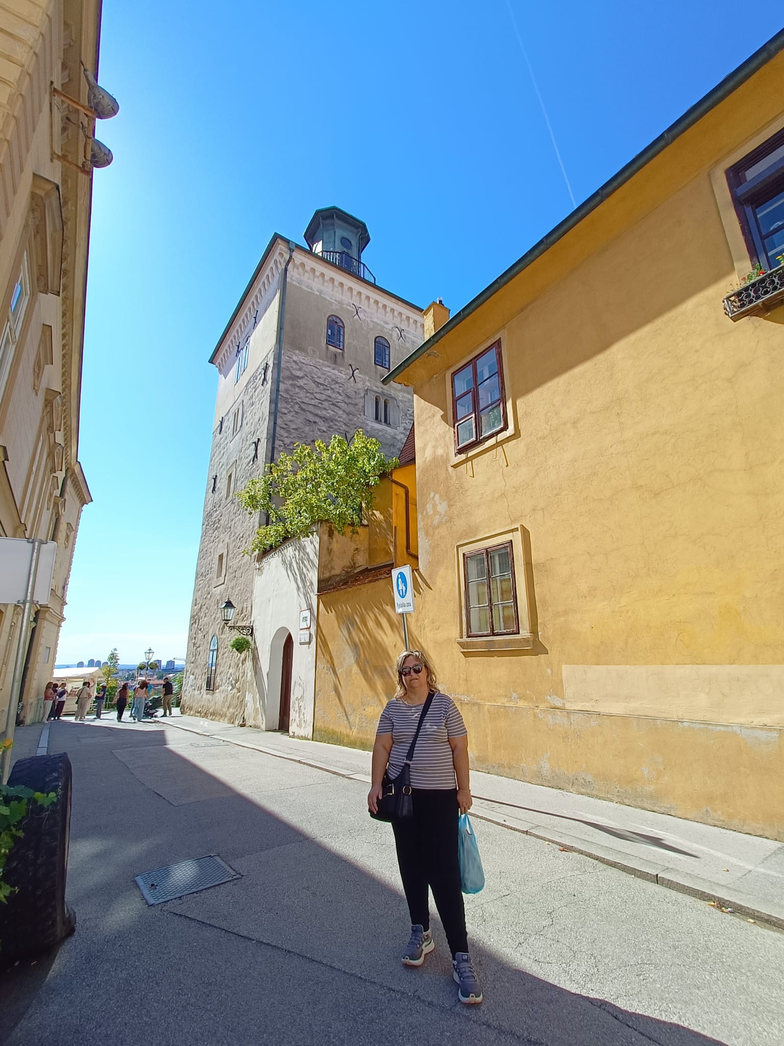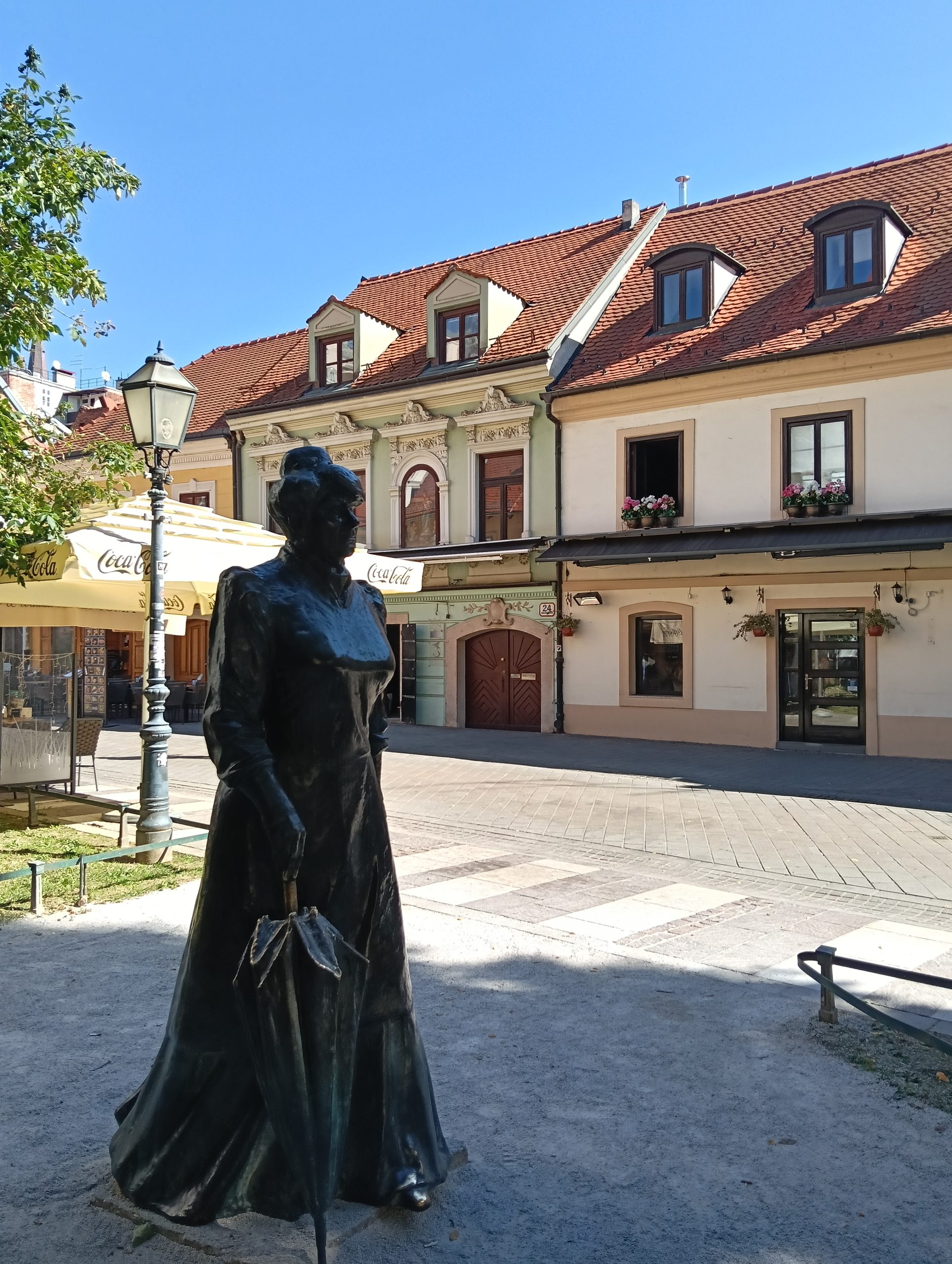 Toda la calle peatonal se encuentra rodeada de fachadas de colores en bonitos tonos pastel, y resulta muy atractiva para pasear. Llegados a un punto delante de una pequeña plazoleta con bancos, en los que se agradece hacer una parada bajo la sombra de sus árboles, encontraréis la estatua de Marija Jurić Zagorka, la primera periodista mujer de Croacia y una de las escritoras más populares del país de todos los tiempos, además de una de las más grandes y reivindicativas feministas y activistas de la historia croata.