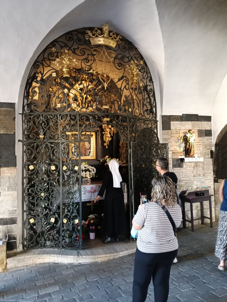 Subiendo por la empinada calle Radićeva, repleta de tiendas de recuerdos y artesanía, llegarás en pocos minutos a la Puerta de Piedra (Kamenita Vrata) en croata), puerta de entrada a la Ciudad Alta y uno de los lugares que ver en Zagreb más sorprendentes.