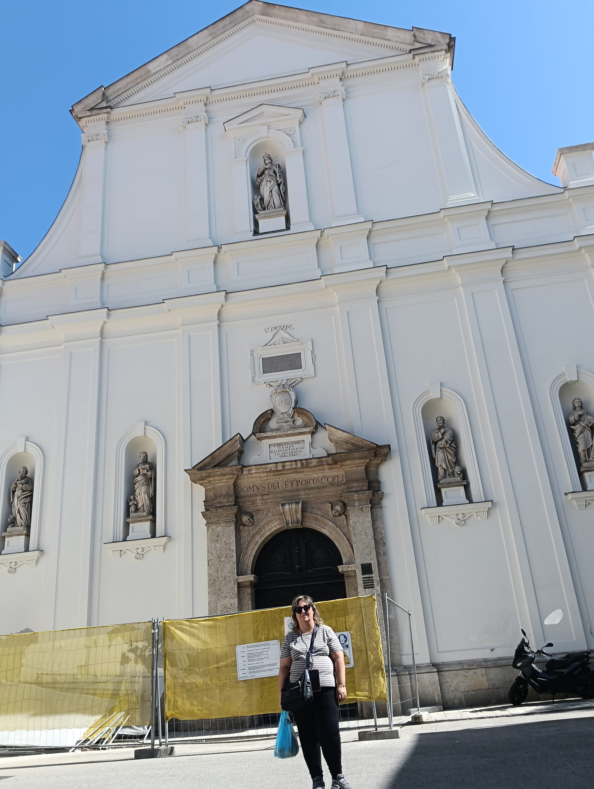 Muy próxima en la plaza de Caterina, se ubica la Iglesia de Santa Caterina construida en el siglo XVII por los jesuitas. Su fachada en estilo barroco y color blanco inmaculado nos gustó mucho. Lamentablemente se encontraba y rodeada de OBRAS🏗️ por todas partes.