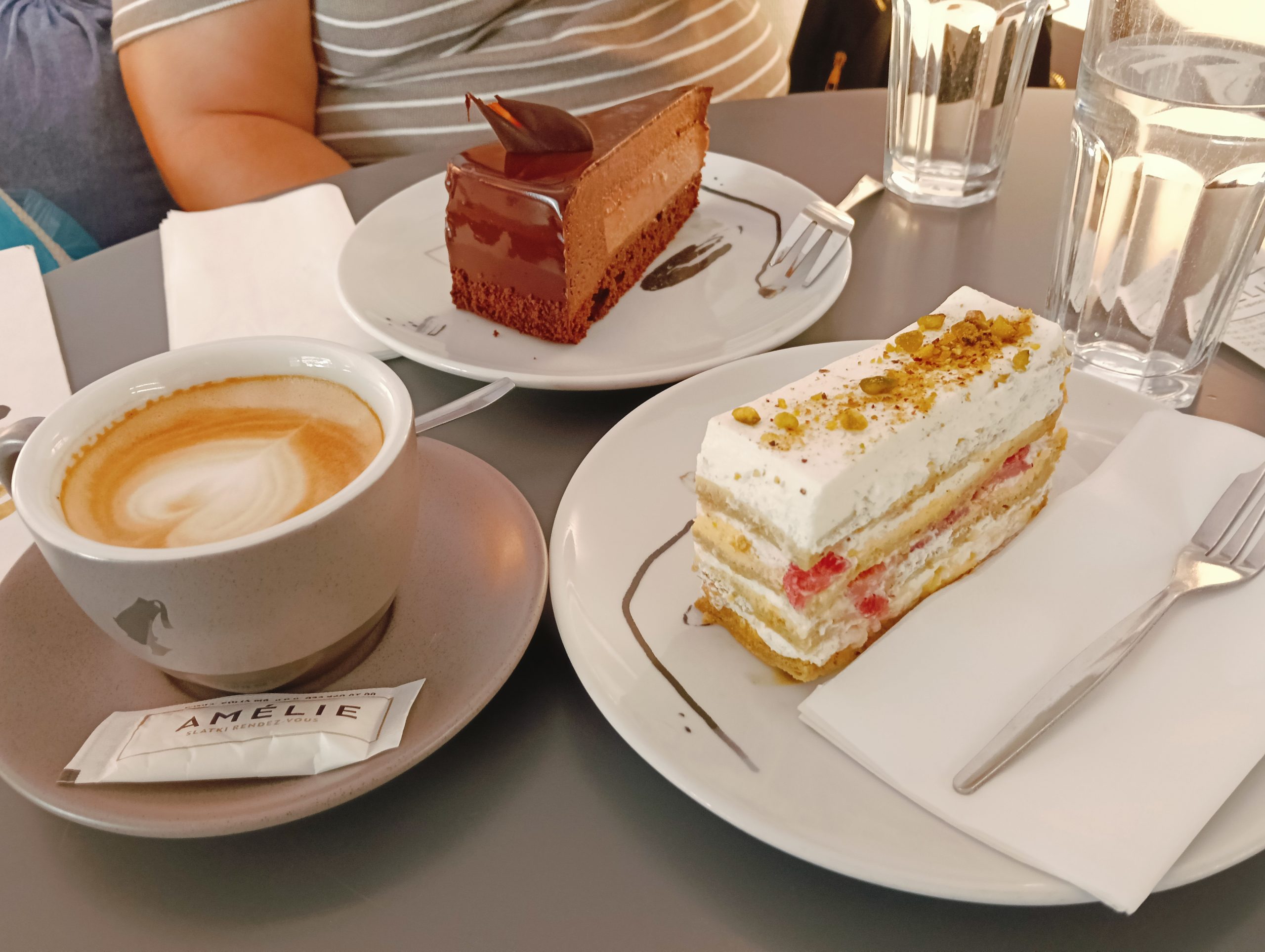 Y como somos muy golosos y no podemos irnos de una ciudad sin probar algún dulce rico, después de bajar un poco la comida en nuestro camino hacia la Ciudad Baja de Zagreb nos detuvimos en la pastelería Amelie (Vlaška ul. 6). Tienen bastante variedad de dulces y el café está delicioso.