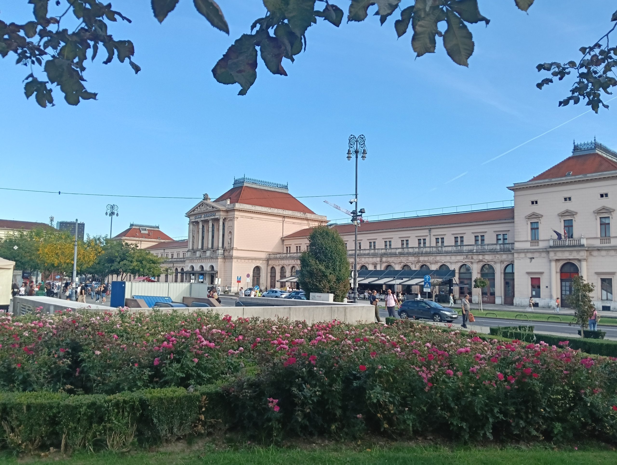 Frente a la estación se extiende la Plaza Zrinjevac, un elegante paseo con plataneros importados de Trieste, que cuenta con un pabellón para conciertos, fuentes ornamentales y sus bustos de personajes ilustres. Zrinjevac es la primera plaza de una serie de ocho que surgieron en el plano urbanístico del ingeniero Milan Lenuc para la creación de la Herradura Verde.