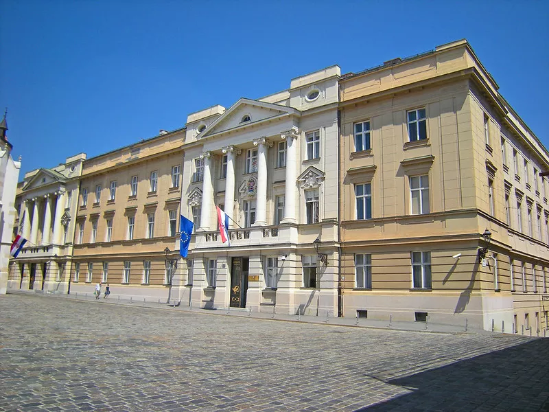 En la misma plaza se encuentran otros edificios históricos y gubernamentales como el Palacio Banski dvori (sede del Gobierno de Croacia), el Antiguo Ayuntamiento de Zagreb, o el Palacio Sabor (sede del Parlamento y el Tribunal Constitucional) donde desde el siglo XVIII se vienen tomando las principales decisiones para los croatas, como ser la separación del Imperio Austro-Húngaro a la finalización de la Primera Guerra Mundial o la posterior salida de Yugoslavia en 1991.